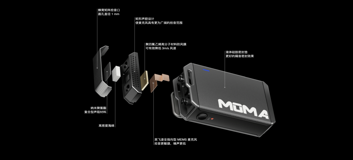 為了滿足更多便攜性和智能化需求,其產品也不斷向輕量簡易化的方向演進。基于 110 多項無線音視頻專業技術,MOMA猛瑪高效堆疊音視頻處理技術,在三年期間,實現全球五大創新,成功驗證了從專業技術設備向消費級設備的轉型可能,引領著行業發展。