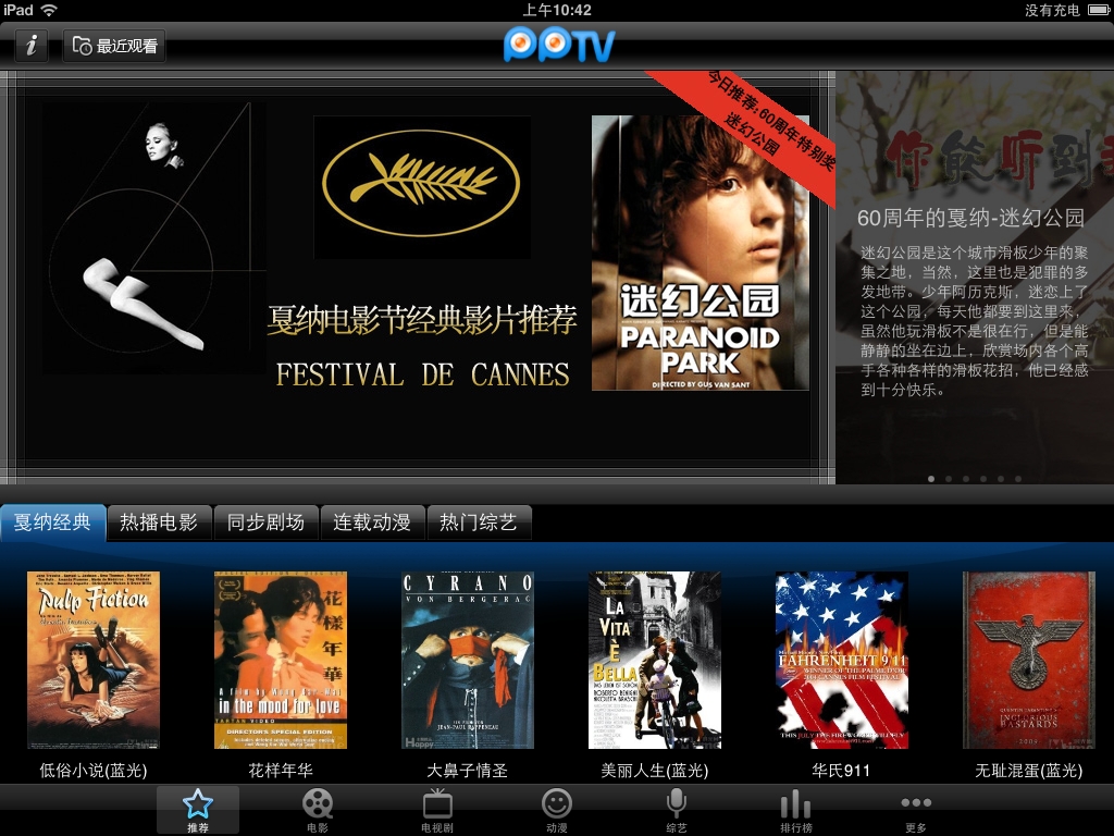 早在2010年就布局 iPad 的應用版本的 PPTV 網絡電視,針對 iPad 平板電腦的瀏覽器顯示技術要求定制的前提下,通過圖文檢索、雙列圖文、大幅圖墻等展現形式匯聚精編影視內容,全面適用于登陸中國內地市場的 Wi-Fi 版 iPad,iPad 用戶可以基于此應用完全自由暢快的瀏覽 PPTV 網絡電視最新最熱的海量高清影視節目。