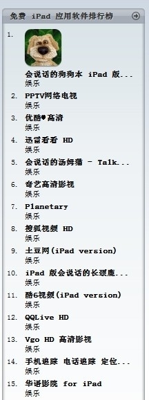 PPTV 網絡電視 iPad 應用位居 APP 視頻軟件排行第一