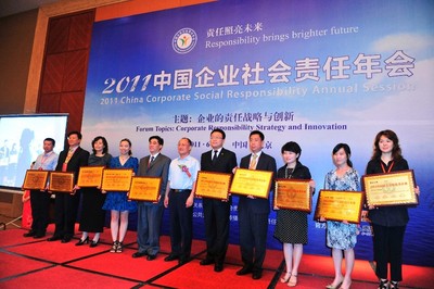 “第三屆企業(yè)社會(huì)責(zé)任年會(huì)”由中國外商投資企業(yè)協(xié)會(huì)、中國保護(hù)消費(fèi)者基金會(huì)、中國民(私)營經(jīng)濟(jì)研究會(huì)、中國環(huán)境新聞工作者協(xié)會(huì)和北京市石景山區(qū)人民政府聯(lián)合主辦,2011年6月17日在北京舉行。本次年會(huì)主題為“企業(yè)的責(zé)任戰(zhàn)略與創(chuàng)新”。當(dāng)天企業(yè)高管、政府官員、專家、國際組織及 NGO、中外主流媒體記者等各界人士匯聚一堂。為提醒全世界的企業(yè)都來重視社會(huì)責(zé)任、更好的履行社會(huì)責(zé)任,并號(hào)召更多企業(yè)參與其中,經(jīng)與會(huì)企業(yè)提議,年會(huì)組委會(huì)及與會(huì)的80家中外知名大公司還倡議從明年起,將每年的6月16日確立為世界“企業(yè)社會(huì)責(zé)任日”。