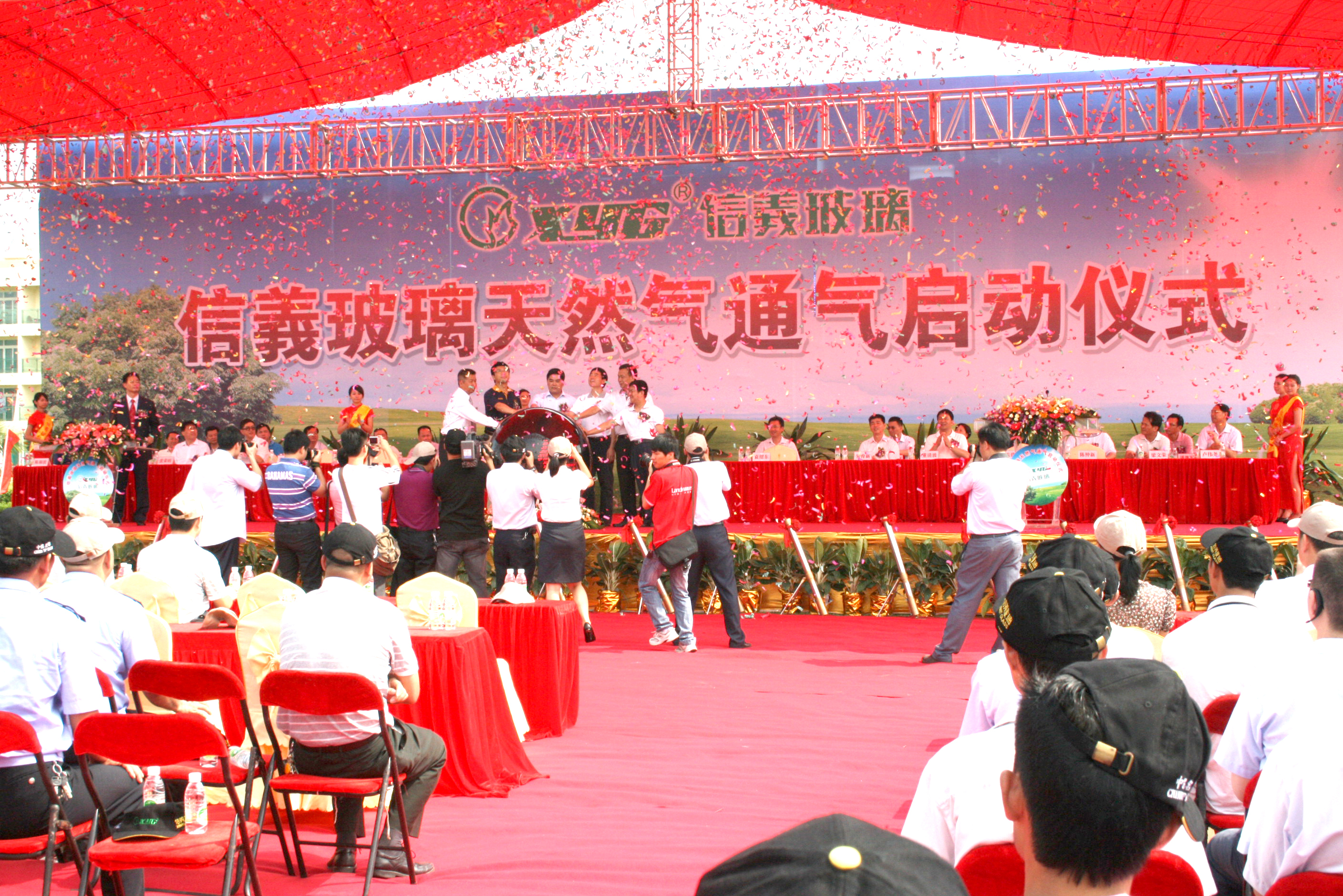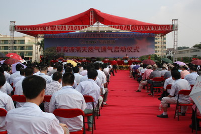 信義玻璃東莞事業(yè)部天然氣通氣慶典儀式得到了東莞市、虎門鎮(zhèn)政府相關領導和虎門鎮(zhèn)路東村社區(qū)群眾的關注,東莞市、虎門鎮(zhèn)政府相關領導、中海油集團代表、駐虎門各媒體記者等共1000余人參加了此次的“油改氣”工程啟動儀式。“油改氣”工程的啟動,成為信義玻璃在清潔能源利用、促進節(jié)能環(huán)保史上的重要里程碑。