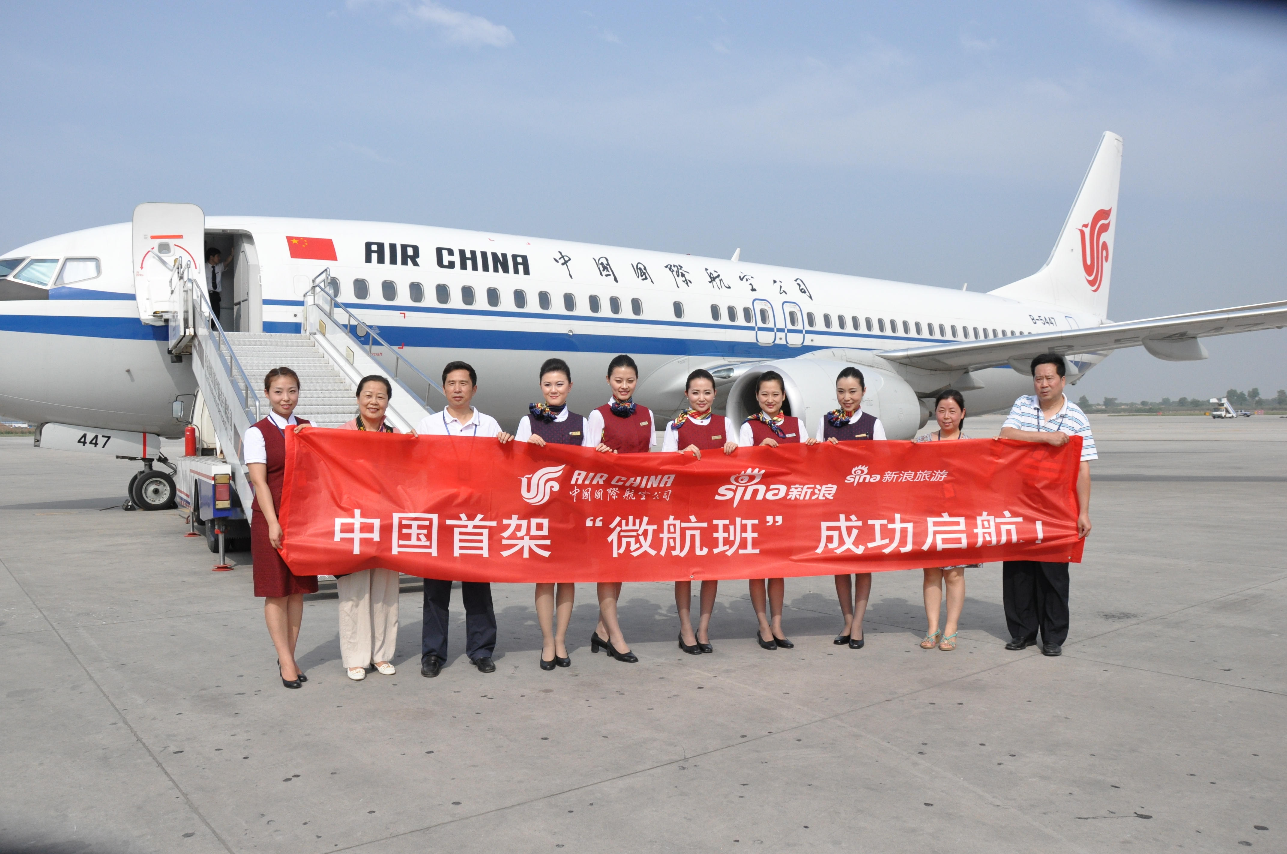 “微航班”也叫“微博航班”,是中國(guó)國(guó)際航空公司與新浪協(xié)作專門面向微博網(wǎng)友開(kāi)通的以“我的航班我做主”為主題的專屬航班。該航班由國(guó)內(nèi)首架具有天空內(nèi)飾的波音737-800飛機(jī)執(zhí)飛,航程為北京-西安,機(jī)票價(jià)格僅為航線票價(jià)的4.8折暨490元(不含稅費(fèi)),開(kāi)行時(shí)間為2011年7月1日早上06:50。