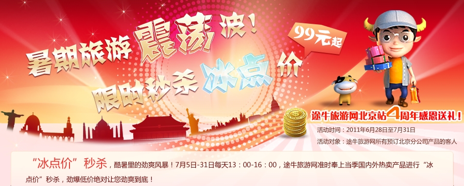 爭分奪秒,冰爽到底 途牛旅游網北京4周年慶體驗價勁爆開秒