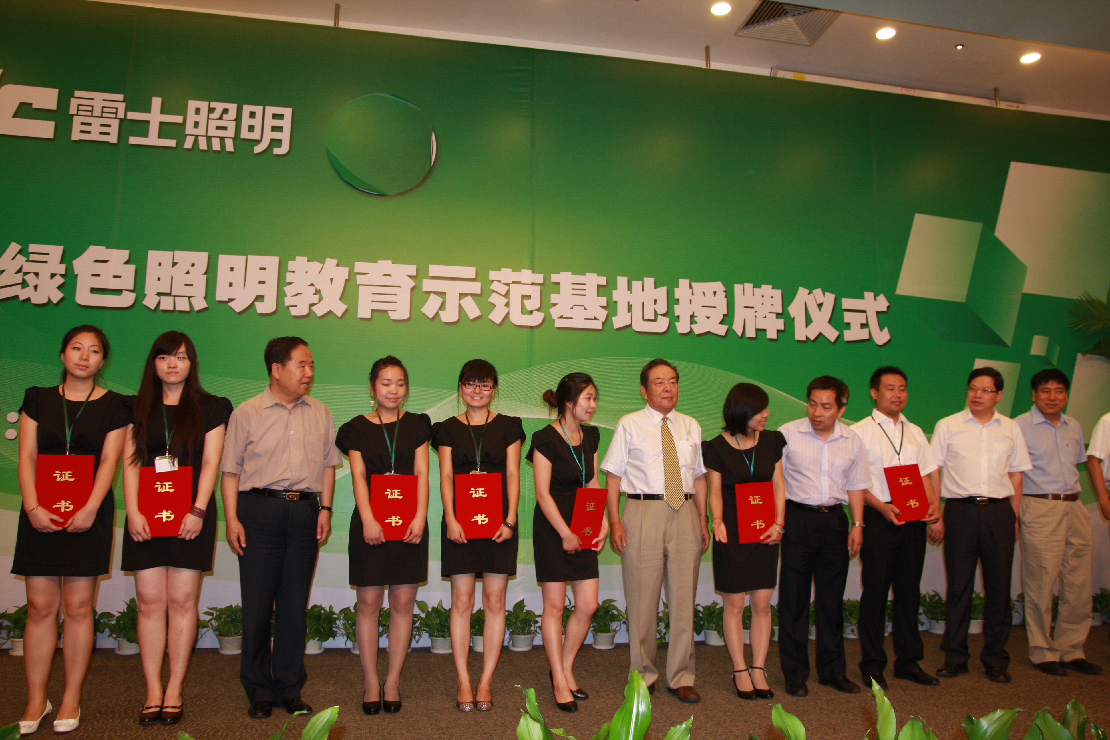 當天上午,為了做好綠色照明推廣和教育宣傳工作,向公眾深入傳播和普及綠色節能照明理念,現場主辦方還舉辦了“雷士照明光明行八省支教及照明產品捐贈儀式,國家發改委、國務院機關事務管理局、國家節能中心、北京節能環保中心、“逐步淘汰白熾燈、推廣節能燈”項目辦、中國節能協會等領導以及雷士照明董事長吳長江,一同上臺向雷士光明行八省支教志愿者頒發了愛心支教牌匾,宣告雷士“2011全國八省支教愛心及捐贈節能照明產品活動”正式啟動。