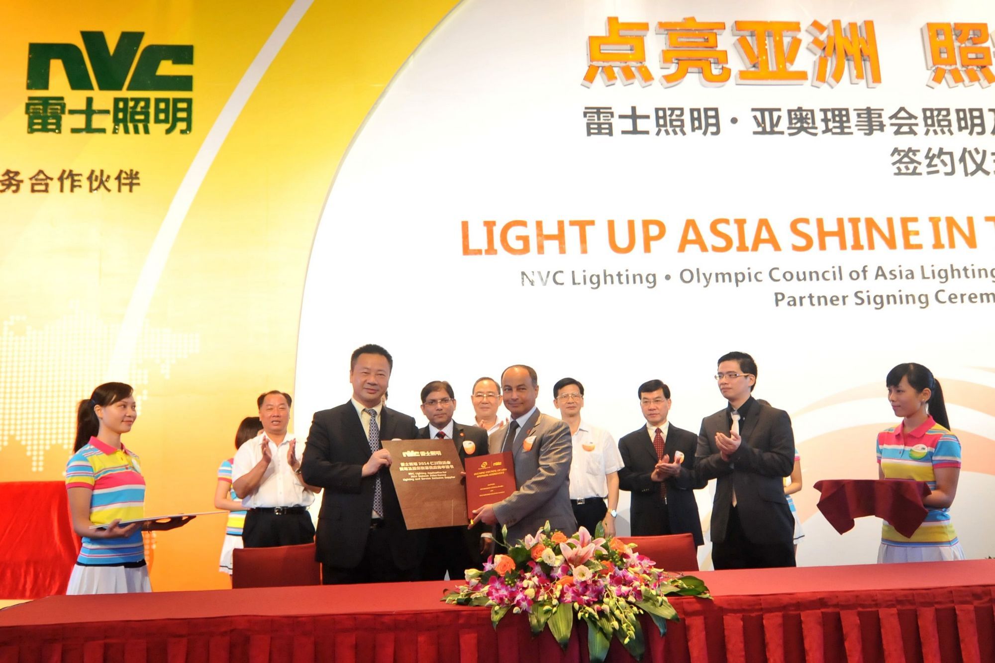 亞奧理事會總干事侯賽因,廣東省人民政府副省長佟星,廣東省惠州市委副書記、市長李汝求,廣東省人民政府副秘書長林英,惠州市副市長李選民等省市領導,以及廣州亞組委、天津東亞運動會、沈陽全運會、青島世園會、河南農運會等相關部門領導,雷士照明董事長吳長江等嘉賓出席了現場簽約儀式。