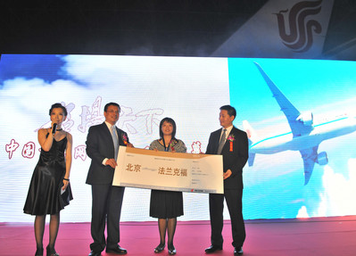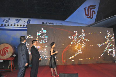 北京2011年9月1日電 /美通社亞洲/ -- 2011年8月31日晚,中國國際航空公司(以下簡稱國航)在北京飛機維修工程有限公司(AMECO)機庫成功舉行“名揚天下” -- 中國首架網絡命名飛機揭幕儀式暨慶祝酒會活動。國航首架,也是中國大陸首架波音777-300ER 飛機命名在萬眾翹盼中終于揭曉,國航“追夢者”飛機即將啟航。國航特別邀請到國航知音會員、大客戶代表、國航微博粉絲及各界特邀嘉賓逾100名嘉賓共同見證了這一難忘時刻。