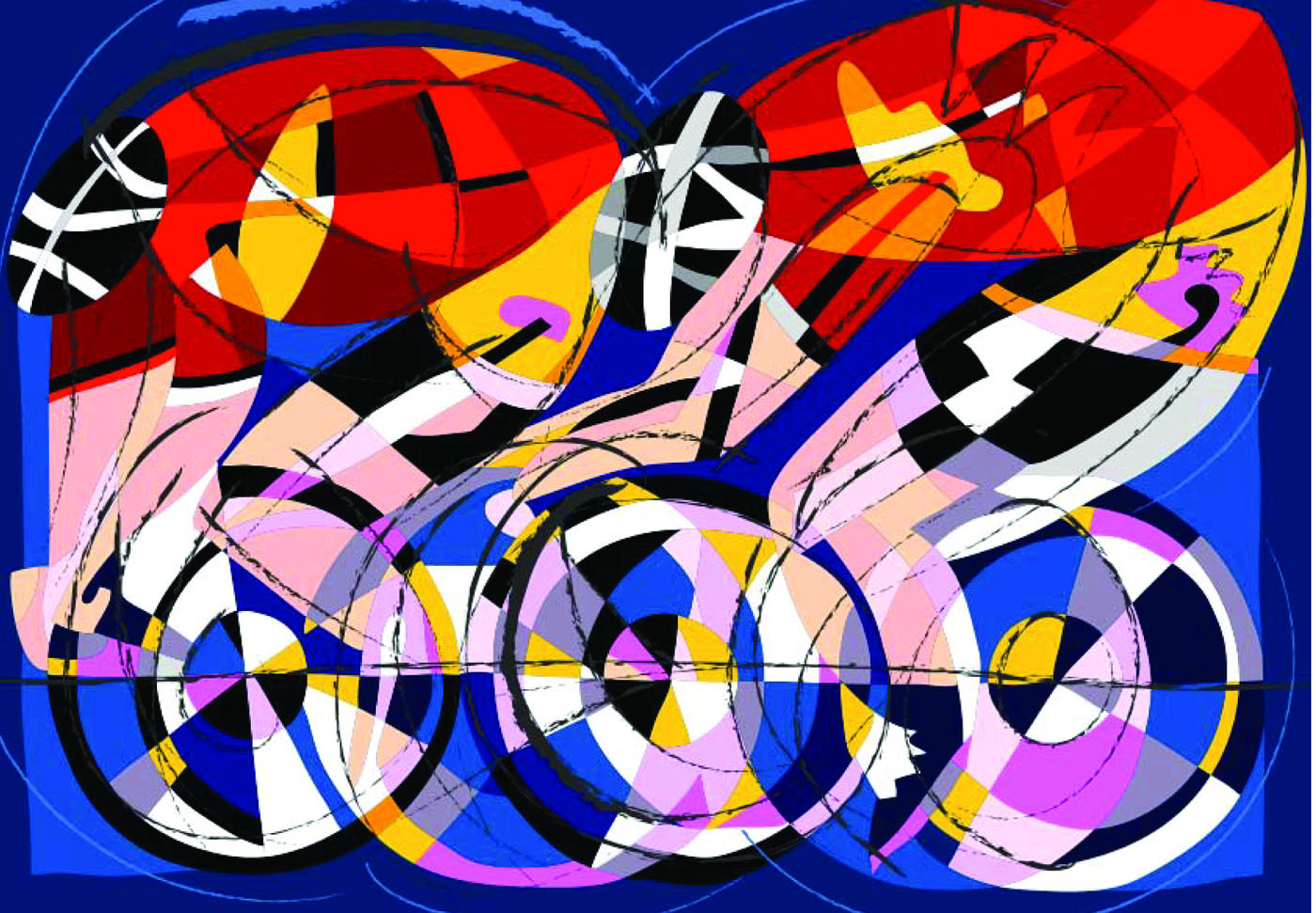 圖片名稱:CYCLISTS 自行車騎手;作者名稱:UGO NESPOLO 烏格.奈斯保羅;作品類型:SILKSCREEN 絲網(wǎng)版畫;尺寸:94.5X70 cm