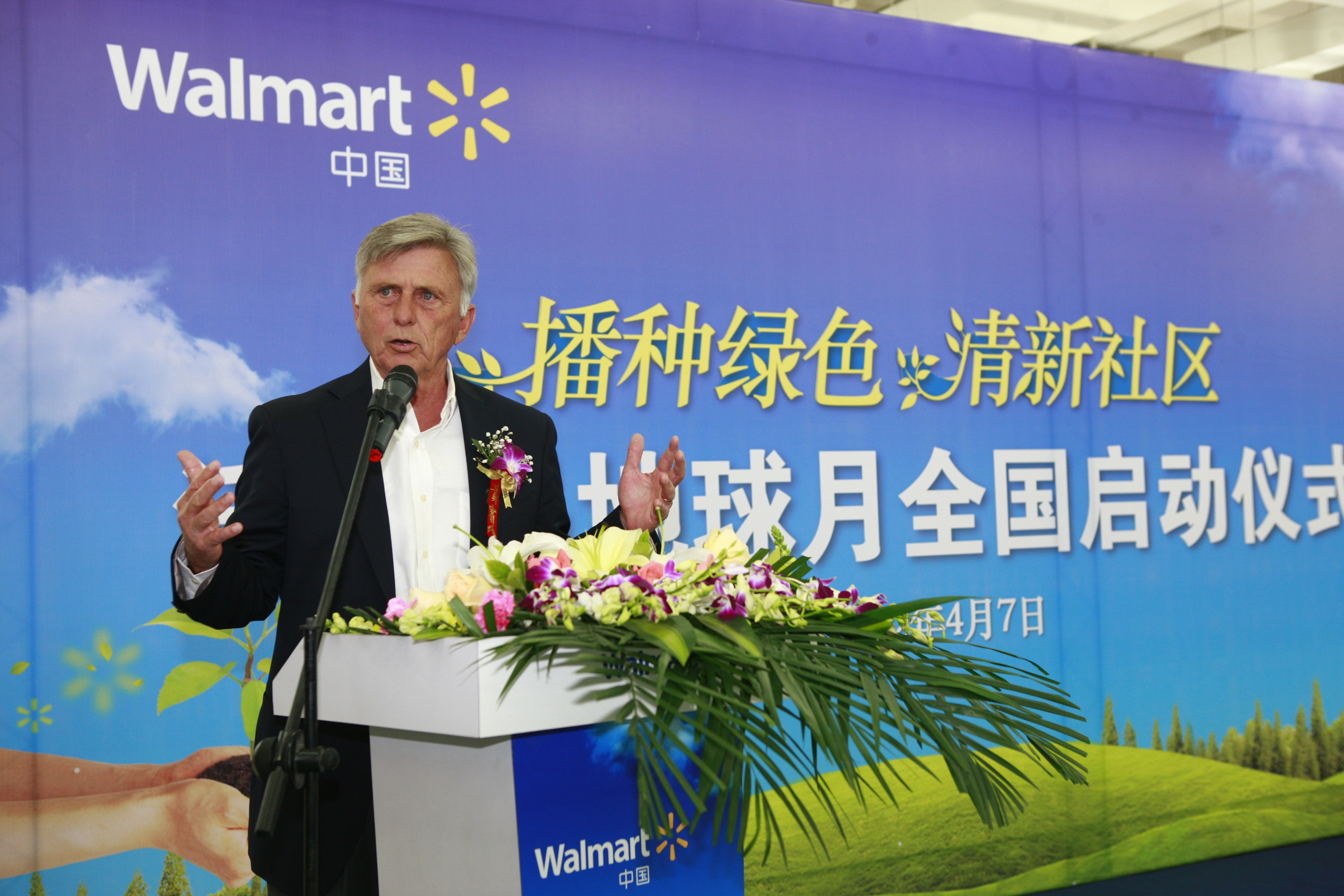 4月7日,美國阿肯色州州長畢孟軻(Mike Beebe)在北京出席沃爾瑪地球月啟動儀式,對沃爾瑪全球及中國致力于可持續發展的行動表示高度贊賞