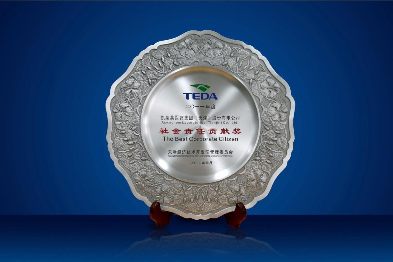 天津2012年5月7日電 /美通社亞洲/ -- 2011年4月26日,天津經(jīng)濟(jì)技術(shù)開(kāi)發(fā)區(qū)慶祝“五一”國(guó)際勞動(dòng)節(jié)暨2011年度社會(huì)責(zé)任貢獻(xiàn)獎(jiǎng)、建功立業(yè)獎(jiǎng)、百?gòu)?qiáng)企業(yè)表彰大會(huì)在濱海國(guó)際會(huì)議中心召開(kāi)。經(jīng)過(guò)嚴(yán)格的評(píng)定和篩選,凱萊英醫(yī)藥集團(tuán)以其雄厚的實(shí)力和一直以來(lái)對(duì)社會(huì)責(zé)任的積極履行榮膺天津經(jīng)濟(jì)技術(shù)開(kāi)發(fā)區(qū)2011年度“社會(huì)責(zé)任貢獻(xiàn)獎(jiǎng)”,公司研發(fā)專業(yè)人才孫江凱以其在企業(yè)建設(shè)當(dāng)中作出的突出貢獻(xiàn)榮獲2011年度“建功立業(yè)”獎(jiǎng)優(yōu)秀建設(shè)者。