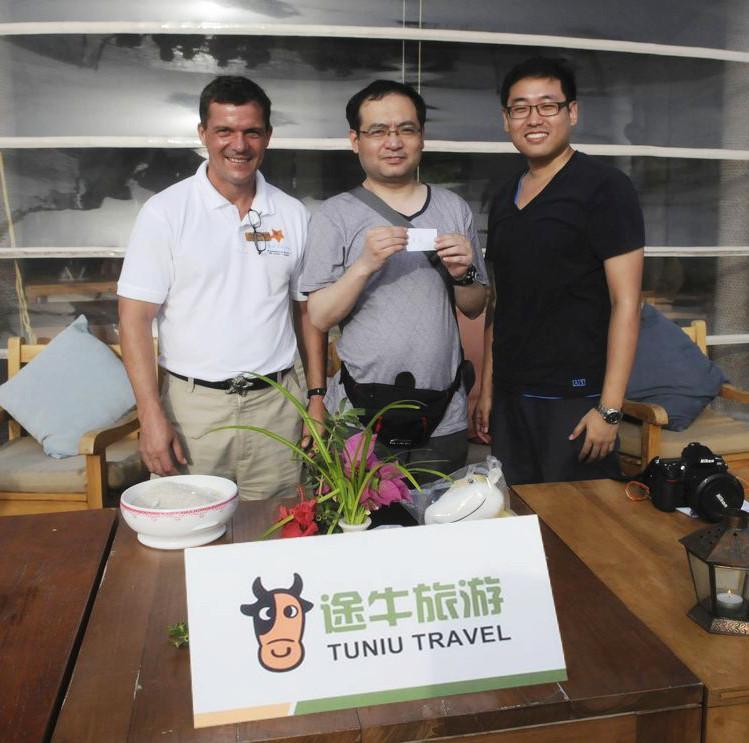 左起:神仙珊瑚度假村首席運營官Michael Wieser、獲贈SPA獎項游客、途牛旅游網總監王劍