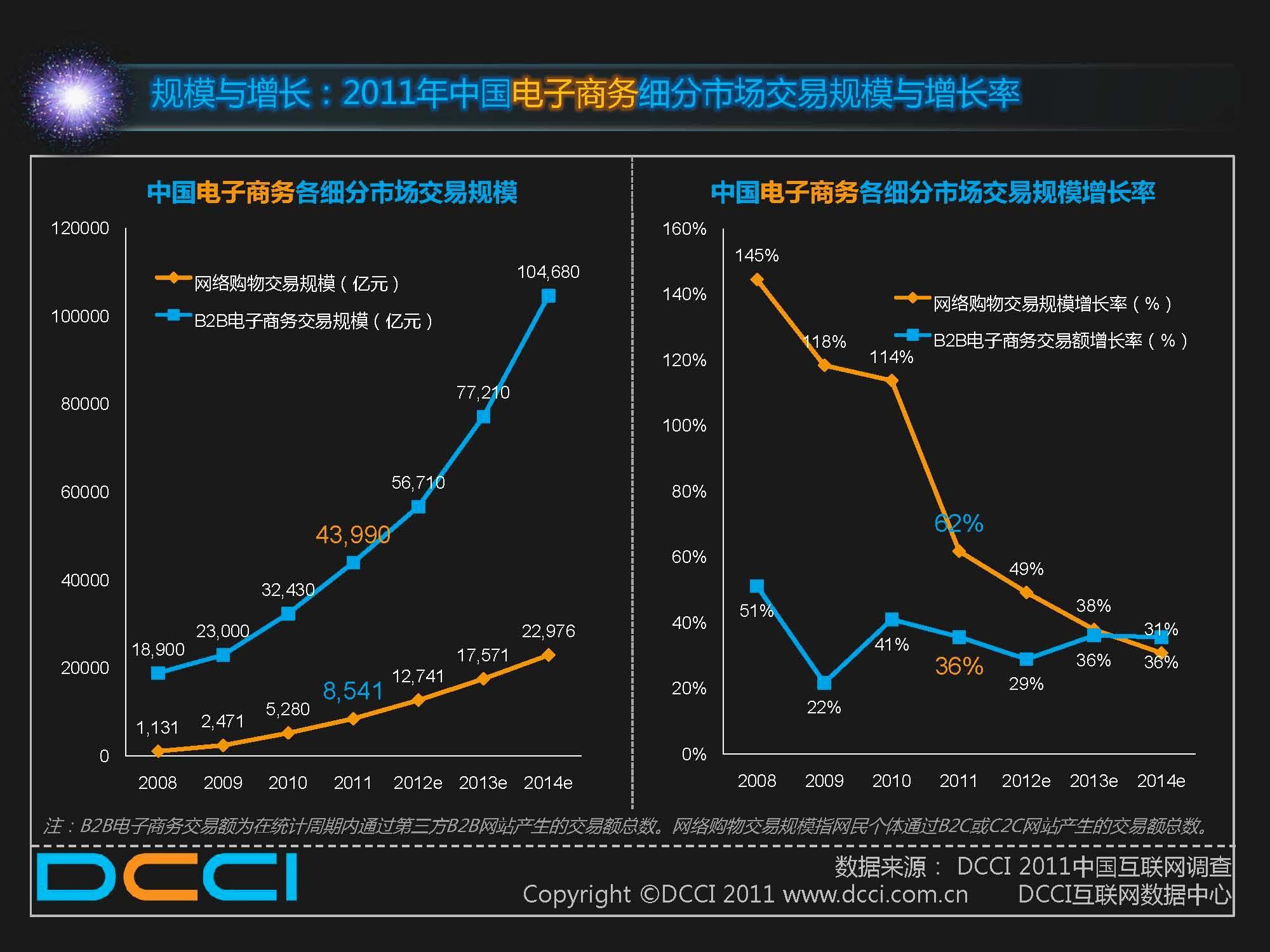 規(guī)模與增長:2011年中國電子商務(wù)細(xì)分市場交易規(guī)模與增長率