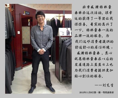 一等獎得主陳先生在獲獎感言中說道:“非常感謝格林豪泰舉辦的這次8周年慶典抽獎活動,我很幸運地成為了這次一等獎的獲得者,此時我的心情非常的激動,同時也非常感謝格林豪泰一直以來為我們提供的一流服務和溫馨的居住環境,為此表示衷心的感謝,我祝愿格林豪泰未來的路會越走越長,爭做這個行業的領軍者。”