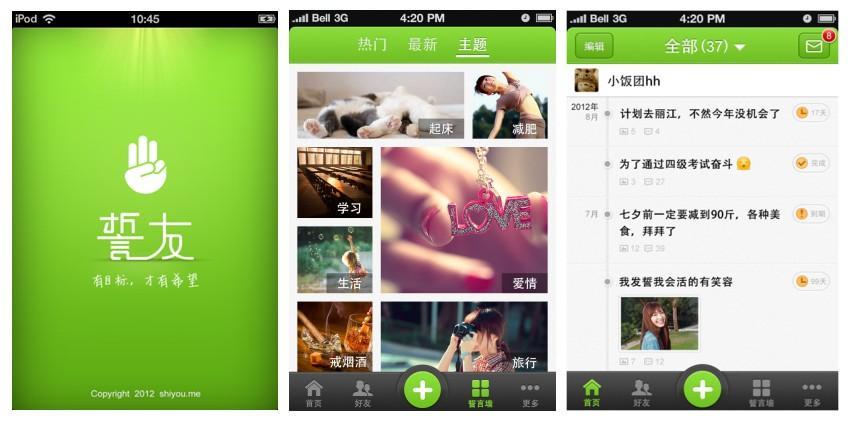 《誓友》最初的創意源于人們在現實生活中經常發生的“發誓“,這一表達個人情感和建立目標的有趣方式。有很多人喜歡發誓,但誓言往往落空,這是因為缺乏最終成功的秘籍。移動互聯網迅速發展的今天,人人都有手機,《誓友》的誕生希望能夠幫助用戶實現他們的誓言,所謂生活有目標就有希望。從意義上來講,這也是之前移動應用領域中所沒有的。