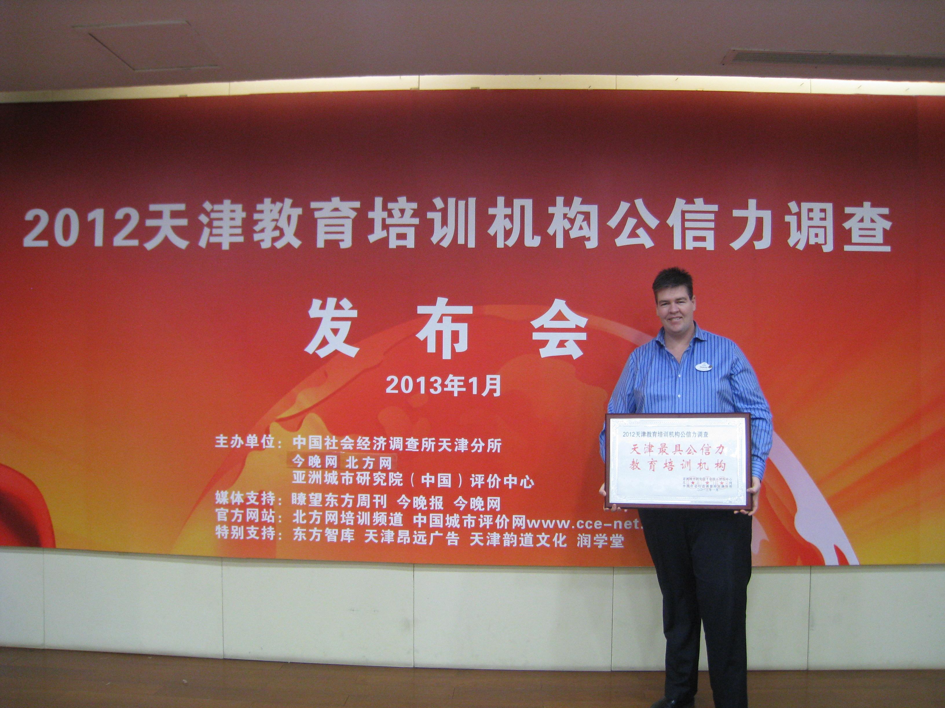 在 “2012天津教育培訓(xùn)機構(gòu)公信力調(diào)查”大型活動中,迪士尼英語憑借其雄厚的綜合實力榮獲“天津市最具公信力培訓(xùn)機構(gòu)”榮譽稱號。