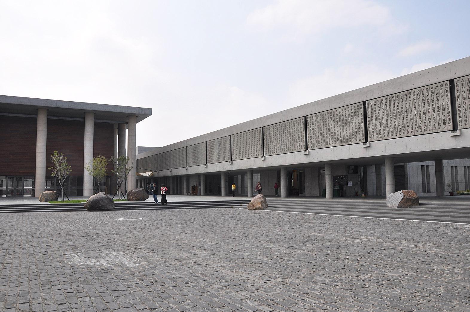 圣嚴法師與建筑師姚仁喜創造的水月道場顛覆了傳統佛教圣地的儀式與視覺感受。它的外觀建筑、空間氣場呈現出一種革命性的進步。它的建筑設計,與佛家的精髓高度融合在一起,《金剛經》、《心經》在佛堂外墻上鏤空雕刻,隨光影變化的字體與內容予人以無限聯想的空間。