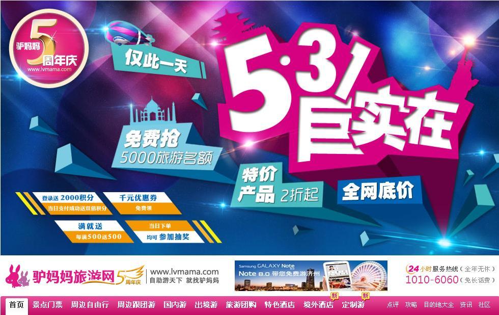 而且,驢媽媽這次在5周年店慶促銷時(shí)間選擇上,也頗費(fèi)心思。5月31日這個(gè)節(jié)點(diǎn),恰好正逢6月旅游消費(fèi)的小淡季,同時(shí)又趕在迎接暑期旅游高峰前,此時(shí)進(jìn)行整合營(yíng)銷造成規(guī)模效應(yīng),這對(duì)淡季促銷和暑期預(yù)熱起到雙重作用,對(duì)消費(fèi)者來說也能得到實(shí)際優(yōu)惠。