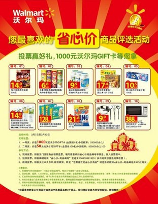 此次沃爾瑪特別推出的“省心價”商品:培元福寒地珍珠米(10公斤裝),售賣價僅為44.8元(每斤僅需2.25元);飄柔滋潤去屑洗發露(750毫升裝),原價每瓶36.9元,現價每瓶28.8,降價幅度達21%。