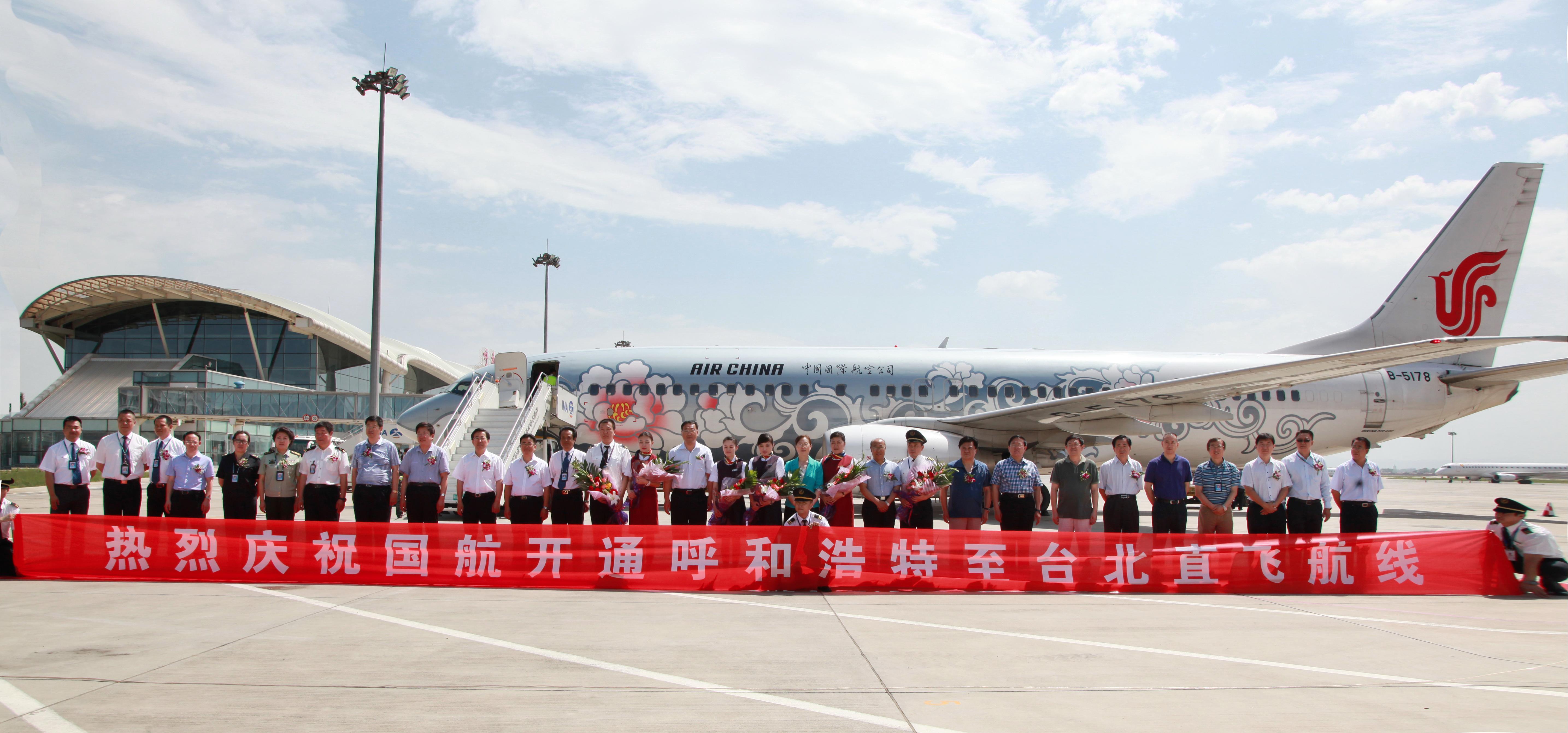 2013年6月25日上午,一架載有國航鳳凰標志的波音738飛機飛離呼和浩特白塔國際機場,直飛臺北桃園機場。中國國際航空股份有限公司呼和浩特-臺北航線首航成功。該條航線的開通將進一步促進內蒙古與臺灣之間的商業、旅游、文化交流,及兩地居民的友好往來。