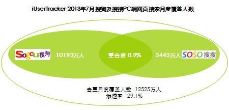 第一,從流量層面來(lái)看,二者在PC端與移動(dòng)端存在良好互補(bǔ)作用。在PC端,搜狗流量份額居于第三,搜搜也具有一定的流量規(guī)模,且二者的用戶重合度較小,具有較強(qiáng)的互補(bǔ)作用。根據(jù)流量監(jiān)測(cè)工具iUserTracker的數(shù)據(jù)顯示,2013年7月PC端搜狗及搜搜的月度覆蓋人數(shù)重合度僅為8.9%,去重滲透率接近30%。在移動(dòng)端,搜狗的布局相對(duì)較少,但搜搜在移動(dòng)端耕耘多時(shí),當(dāng)前已獲取較高的流量份額。搜狗與搜搜融合后在PC端和移動(dòng)端的競(jìng)爭(zhēng)力都將得到加強(qiáng)。