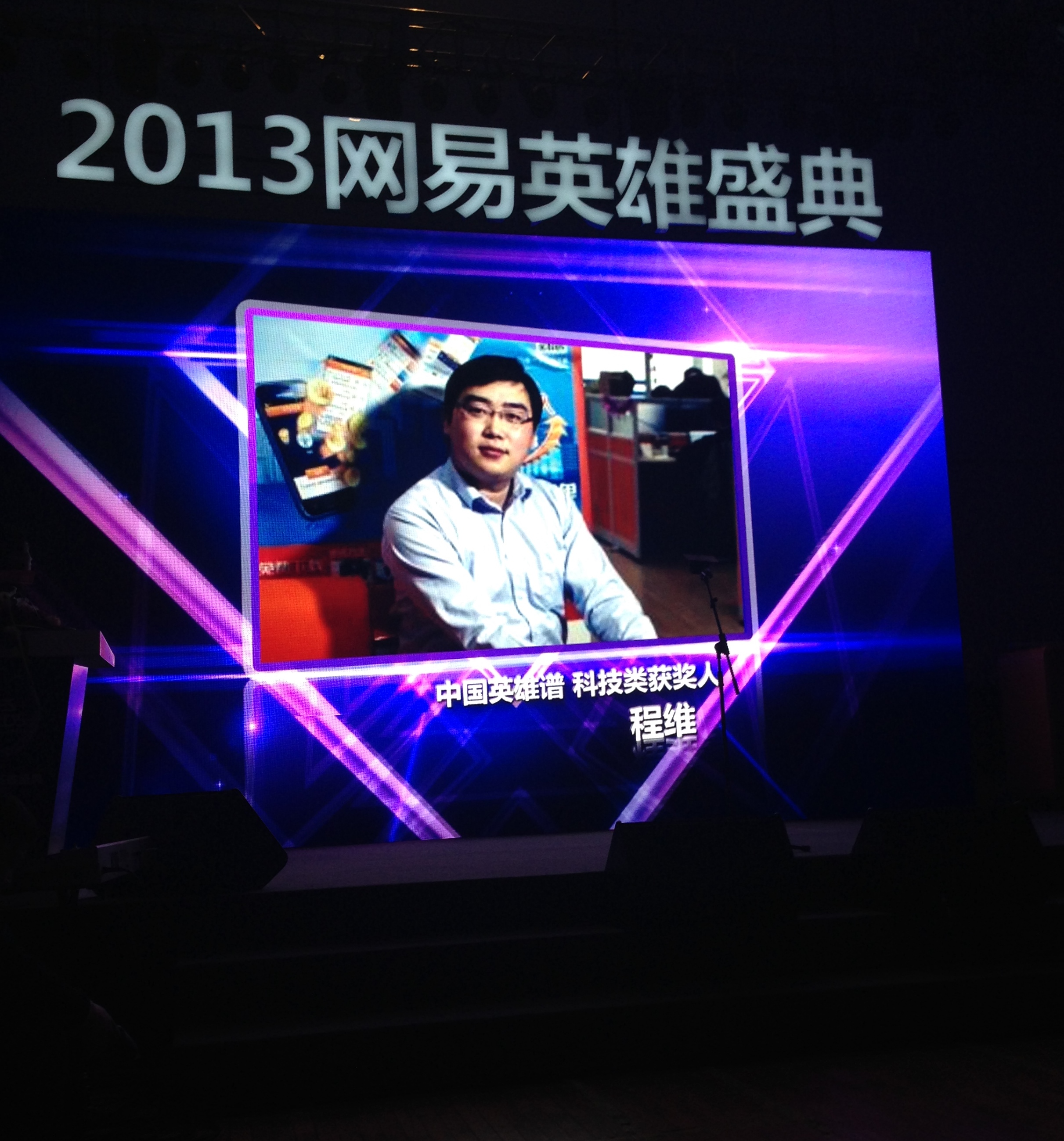 “2013網易英雄盛典”是由網易主辦的大型頒獎盛典,旨在總結過去一年在公益、環保、體育、女性等不同領域做出卓越貢獻的人,在盛典上發布了“2013中國英雄譜”。財經、環保、新青年、體育、女性、公益、旅游、教育、傳媒、文化、藝術、法治、科技等13個領域中的52名候選人歷時近3個月的評選,最終每個領域有一人脫穎而出,形成“2013中國英雄譜”,嘀嘀打車CEO程維最終獲得“科技英雄獎”,該獎項其他提名者是:從牛博網到培訓學校,錘子手機創始人羅永浩、20多年來潛心研究環境污染的健康效應,呼吁關注PM2.5的志明學者潘小川、從非典到H7N9,是醫者更是智者的著名院士終南山。
