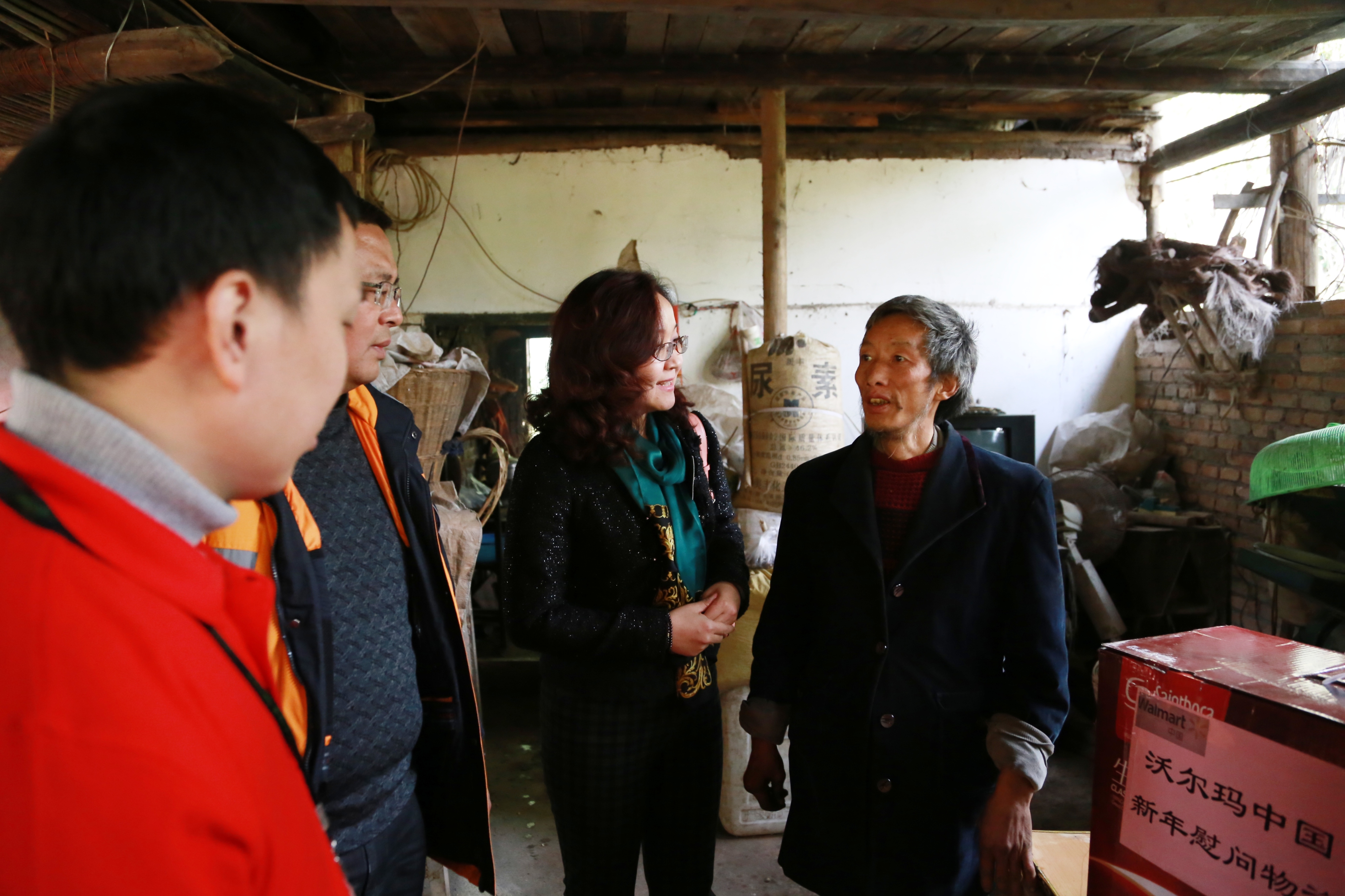 奠基儀式后,沃爾瑪近20位員工志愿者還探訪了永安村的特困家庭,這些家庭的生活都由于地震受到了強烈的沖擊。嚴冬已至,沃爾瑪的員工們為他們帶來了過冬用的暖被,并送來了米、面、油等生活必需品,希望能在新年來臨之際為他們送上一份溫暖的祝福。