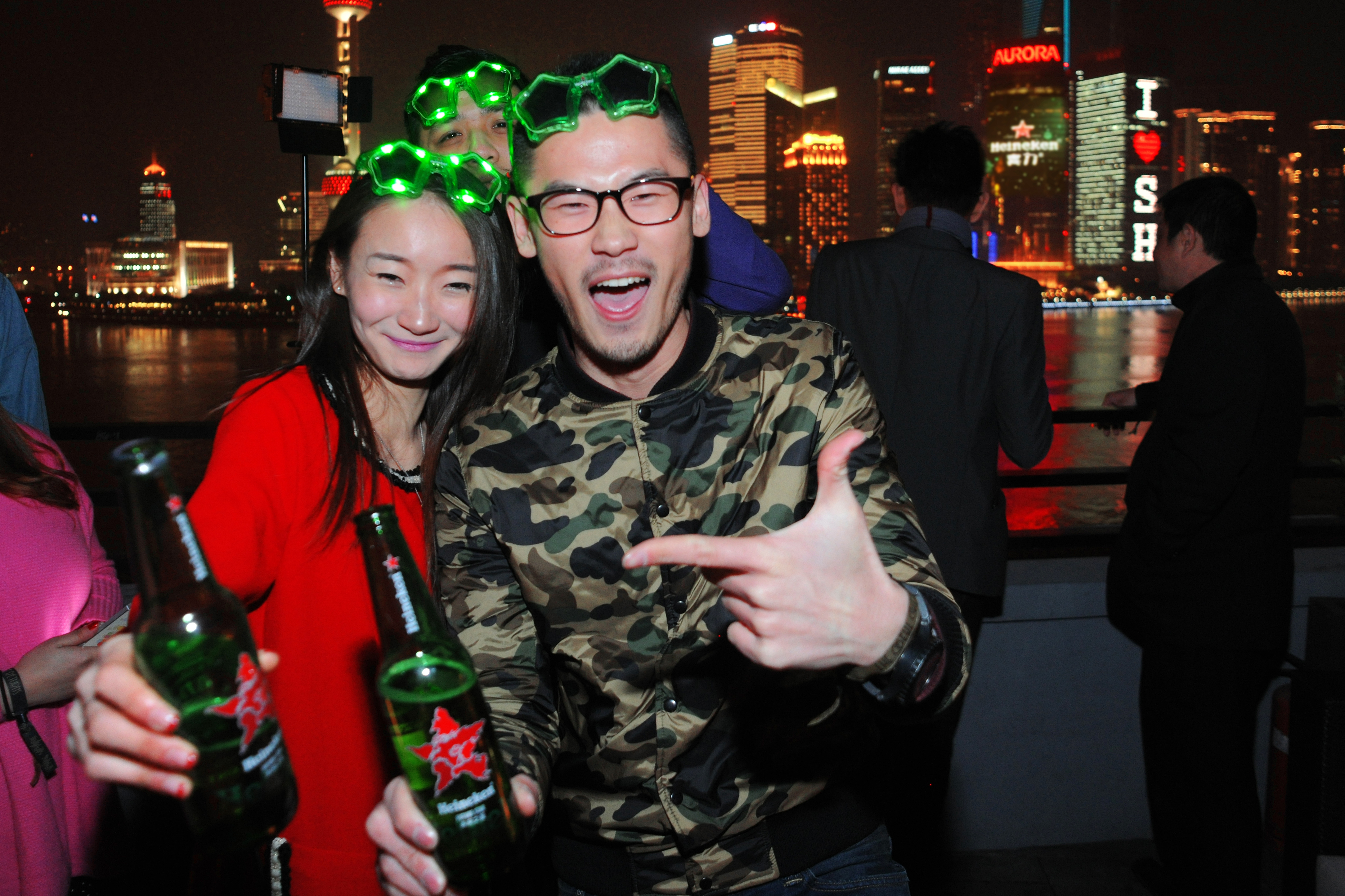 當晚,喜力邀請各路潮流達人歡聚上海外灘三號New Heights (新視角餐廳酒廊) ,他們都是來自于時尚及藝術界的翹楚名流,相聚于此,只為與大家共同歡慶,分享祝福,并迎接2014年的到來。其中囊括時尚潮人徐峰立、新銳時尚設計師Ango、潮流達人Ethan以及來自百里挑一的男嘉賓姜方舟。